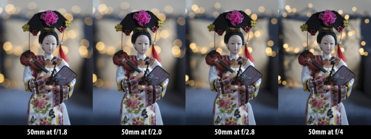 Beyond f/2, the cat’s eye shape almost entirely disappears but shape of the 7-blade aperture becomes more apparent.