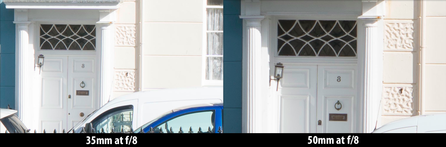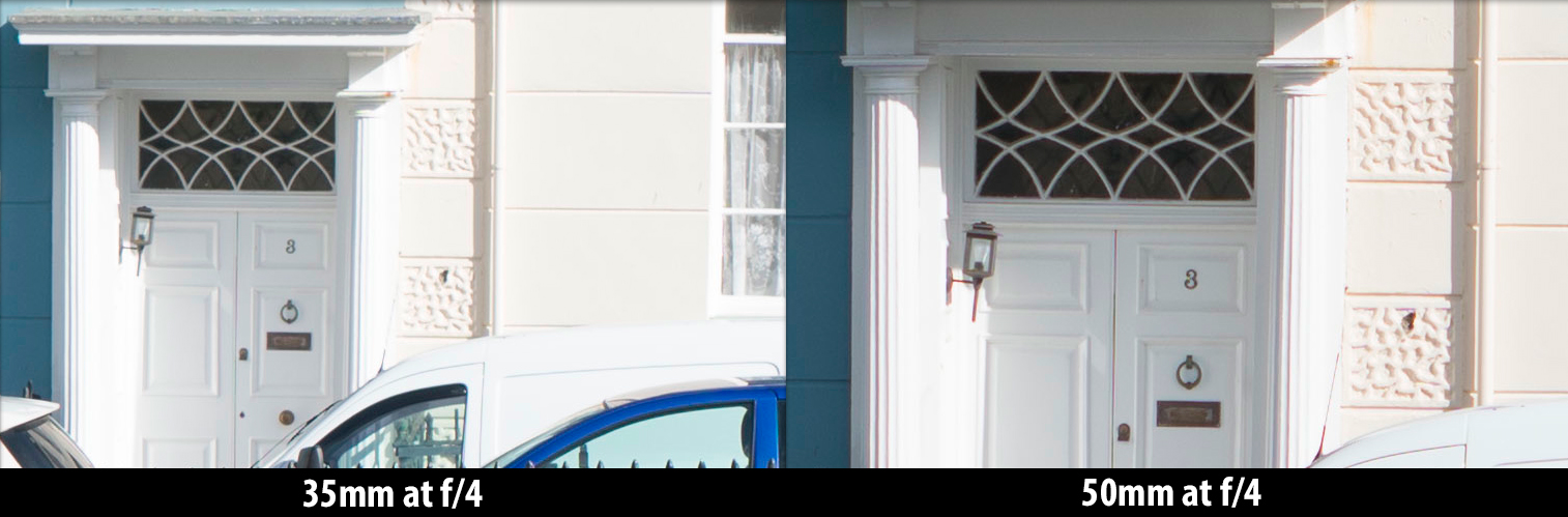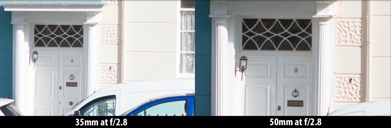 The reason we’ve labeled this an “apples vs. oranges” comparison is because the 35mm and 50mm have completely different fields of view and are, as such, intended for different photographic genres. The former is a standard lens that can be used for almost any genre, from street and documentary to environmental portraits, travel and landscapes, while the latter’s medium telephoto length is ideal for upper body portraits. Below you can see the difference in field of view.