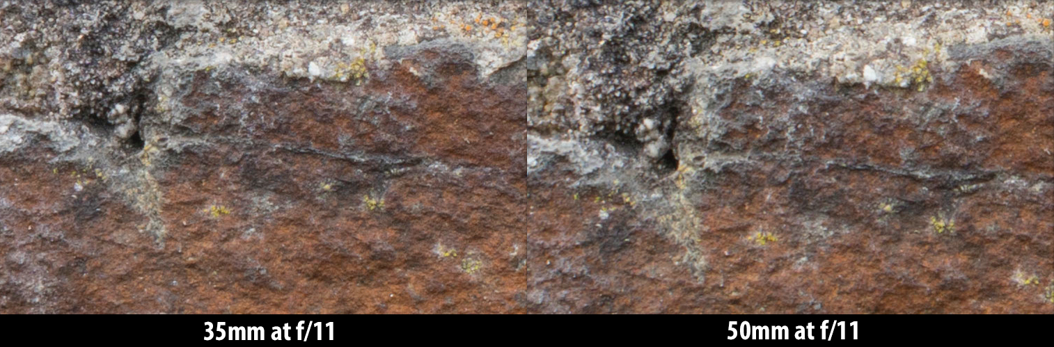 Stop down to f/2.8 and we see a noticeable jump in sharpness and contrast from the 35mm. The 50mm also shows an improvement but it isn’t as perceptible as with the 35mm. Between the two, the 50mm remains slightly sharper.