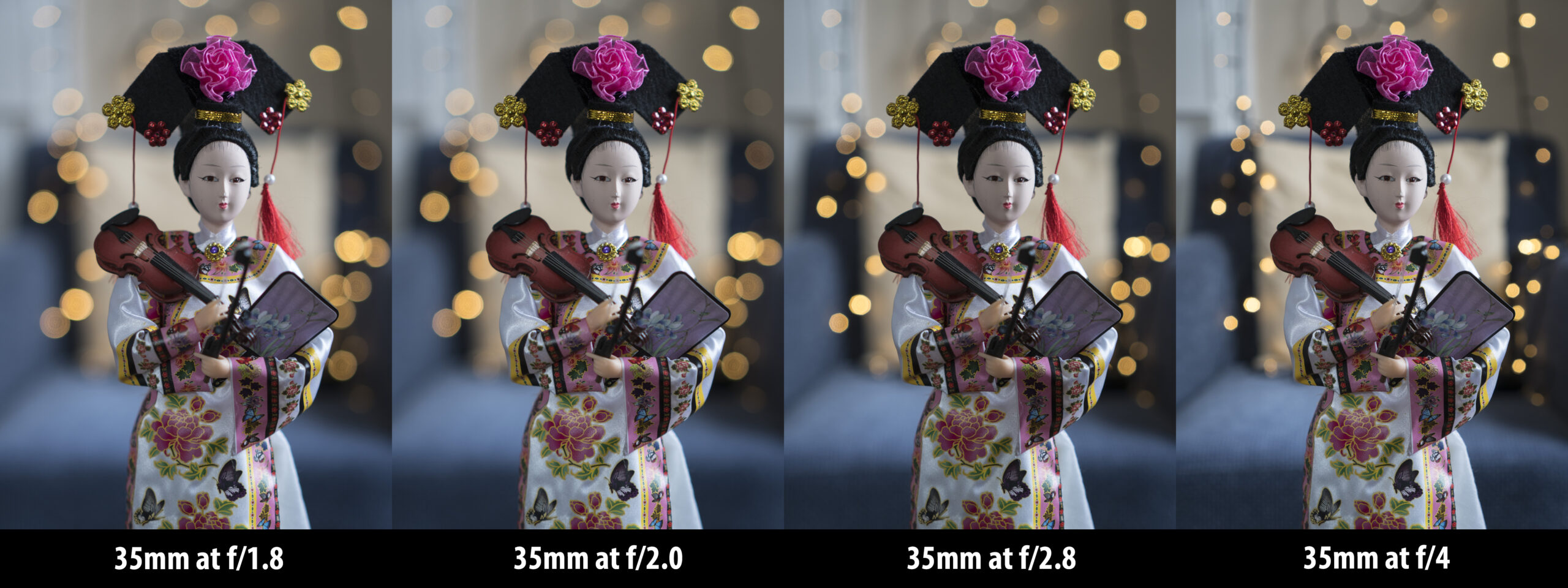 Both the 35mm and 50mm are capable of producing a pleasant out-of-focus rendering, or bokeh. At their shared fastest aperture of 1.8, both lenses produce circular specular highlights (bokeh balls) at the centre of the frame. At the corners and edges, this symmetry gives way to a “cat’s eye” shape.